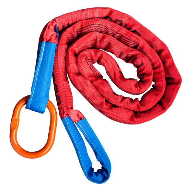 mit extra starkem Mantel und zusätzlich verwebtem Verschleissschutz, auf ganzer Länge mit zusätzlichem Schutzmantel, Schlaufen ebenfalls zusätzlich eingefasst, mit extra breitem Lastring.